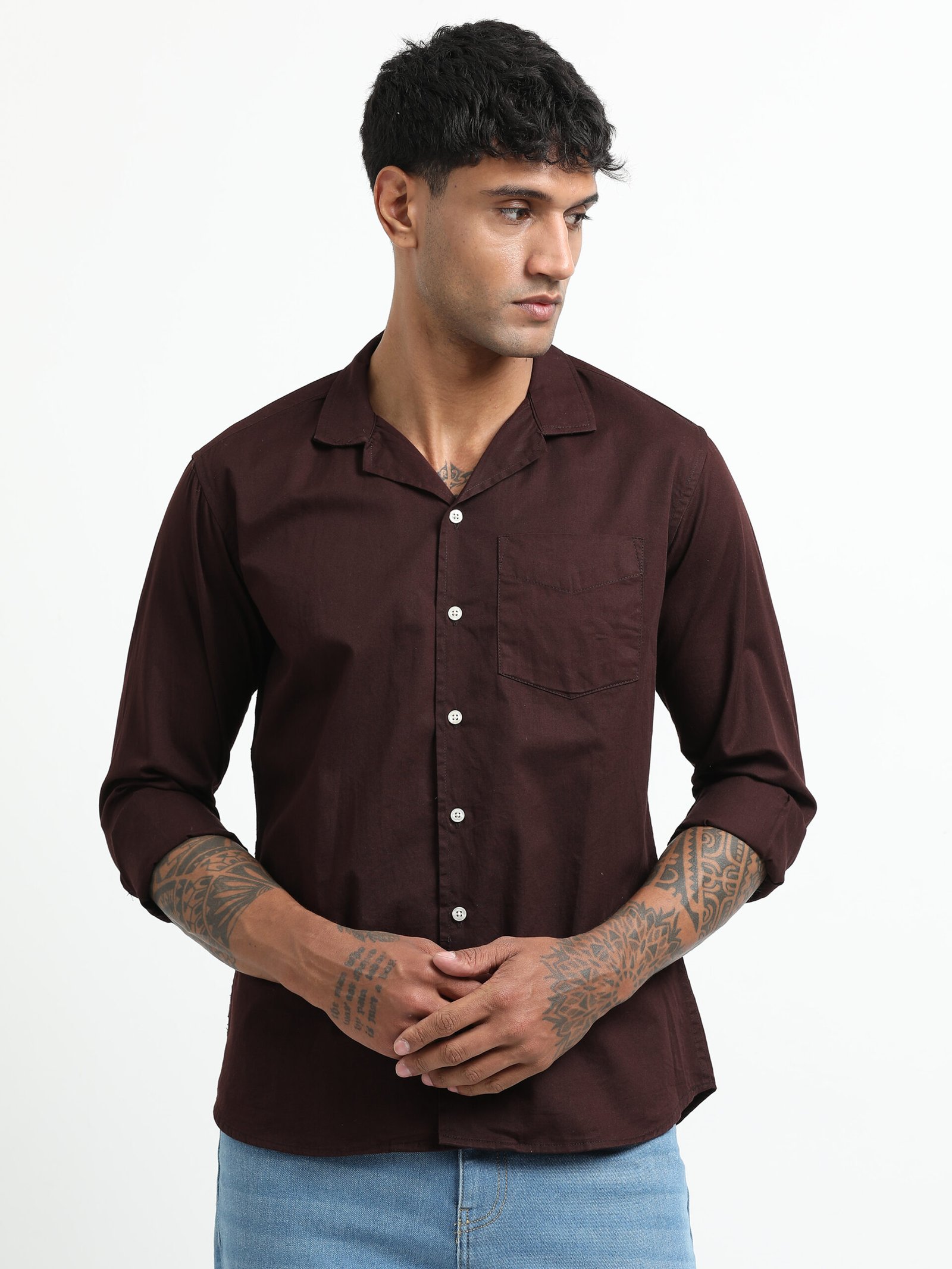 Coco-brown solid full sleeve shirt